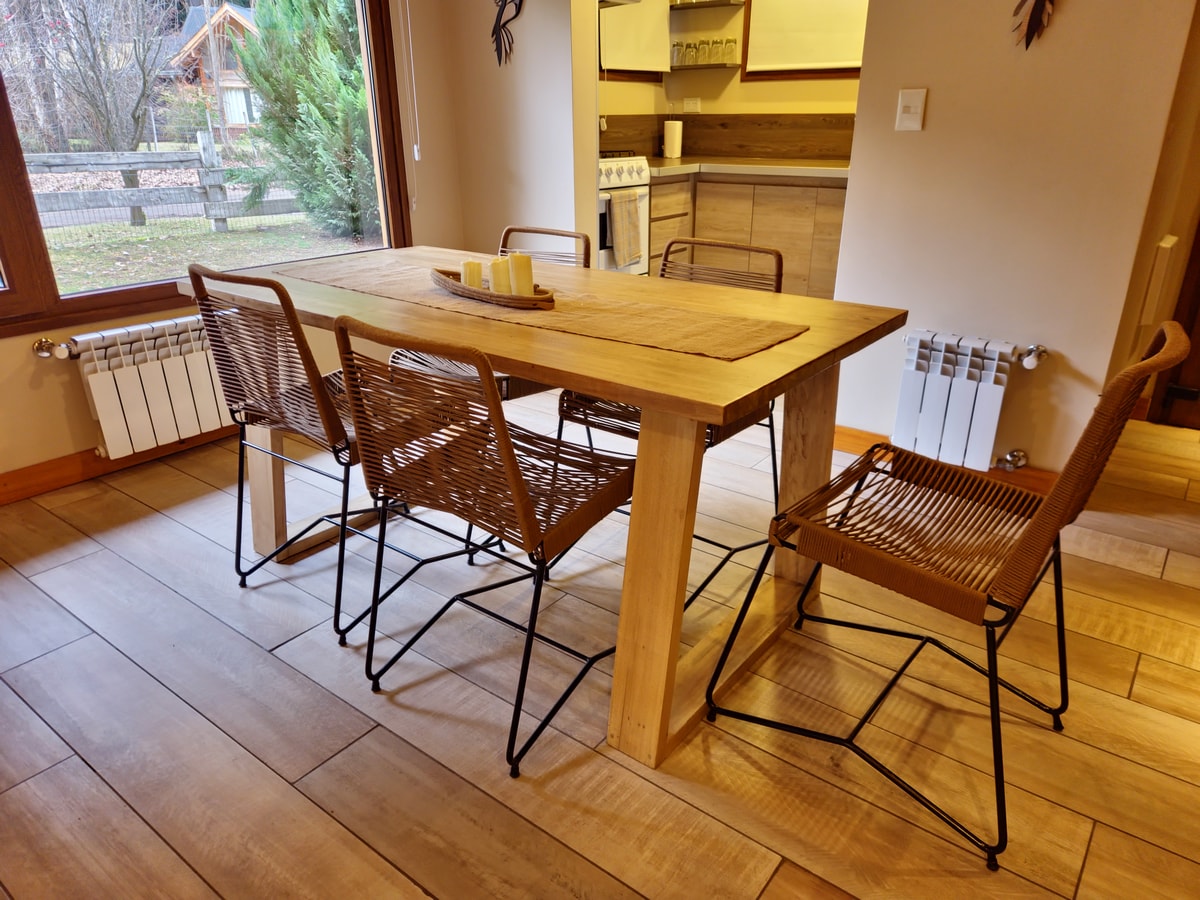 Dispone de dos dormitorios, cocina/ comedor/ sala de estar con dos sofá cama dos baños completos, con secador de cabello, shampú, jabón de tocador, estufa hogar, calefacción por radiadores, tv, wifi, churrasquera, estacionamiento.
