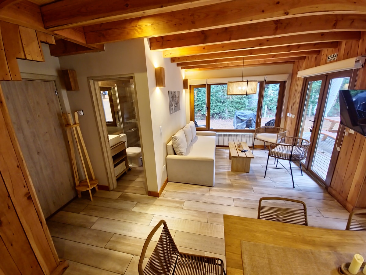 Las cabañas en el complejo El Remanso del Bosque, ofrecen servicios de primera calidad para disfrutar de un entorno natural de estilo suizo.