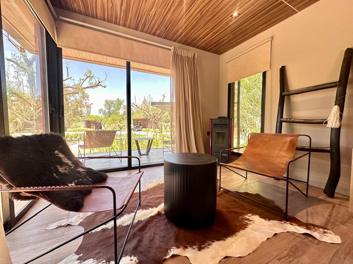Unidad más luminosa de LUN Lodges, con terraza panorámica, cama queen, Wi-Fi, piscina y desayuno incluido.